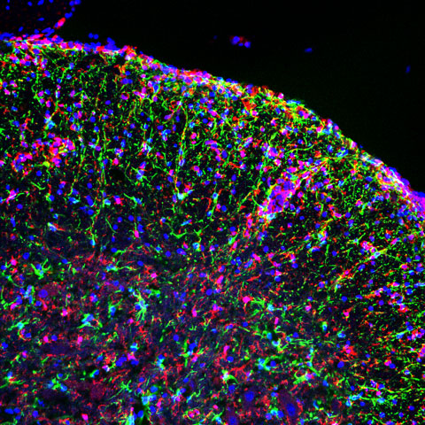 Bannerman P, Hahn A, Soulika A, Gallo V, Pleasure D. Astrogliosis in EAE spinal cord: derivation from radial glia, and relationships to oligodendroglia. Glia. 2007 Jan 1;55(1):57-64. doi: 10.1002/glia.20437. PubMed PMID: 17009237; NIHMSID:NIHMS120514. Download PDF